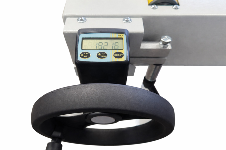 Scorrimento carrello su guide lineari e lettura quota su visualizzatore digitale.
